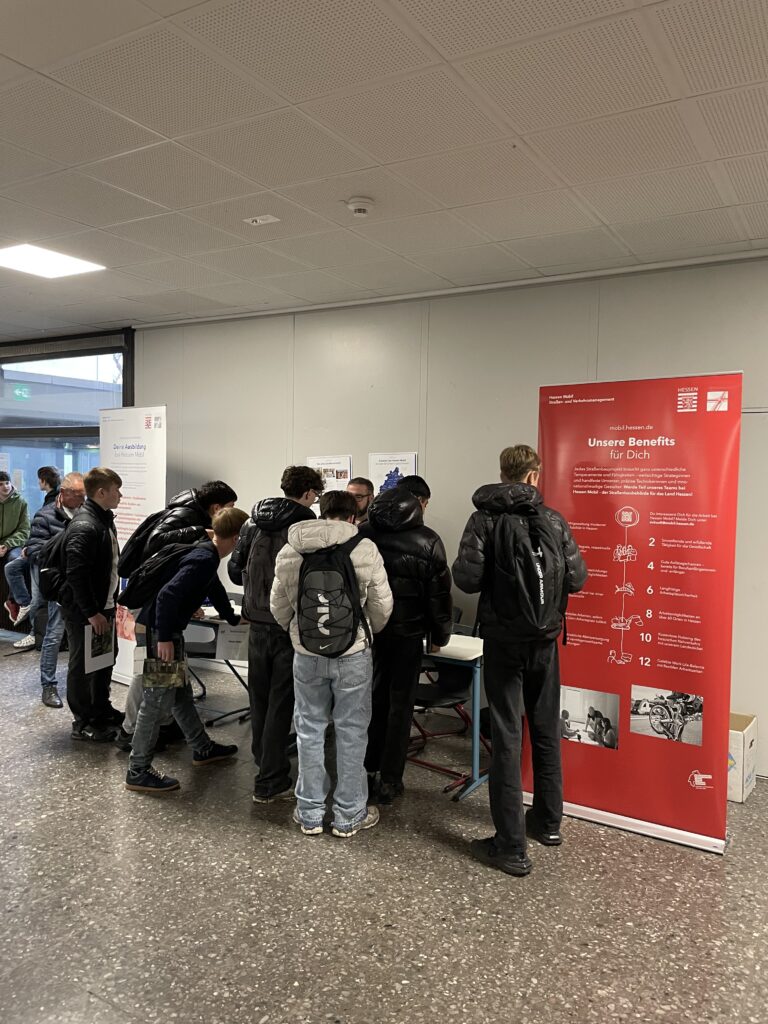 In persönlichen Gesprächen konnten die Schülerinnen und Schüler Fragen stellen, Materialien mitnehmen und Kontakte für Praktika oder Ausbildungsplätze knüpfen und sogar Bewerbungen abgeben. Besonders spannend waren die Einblicke in den Berufsalltag der Polizei und des Zolls, aber auch die technischen Berufe bei Dornhöfer, MHT und Hessen Mobil fanden großes Interesse.