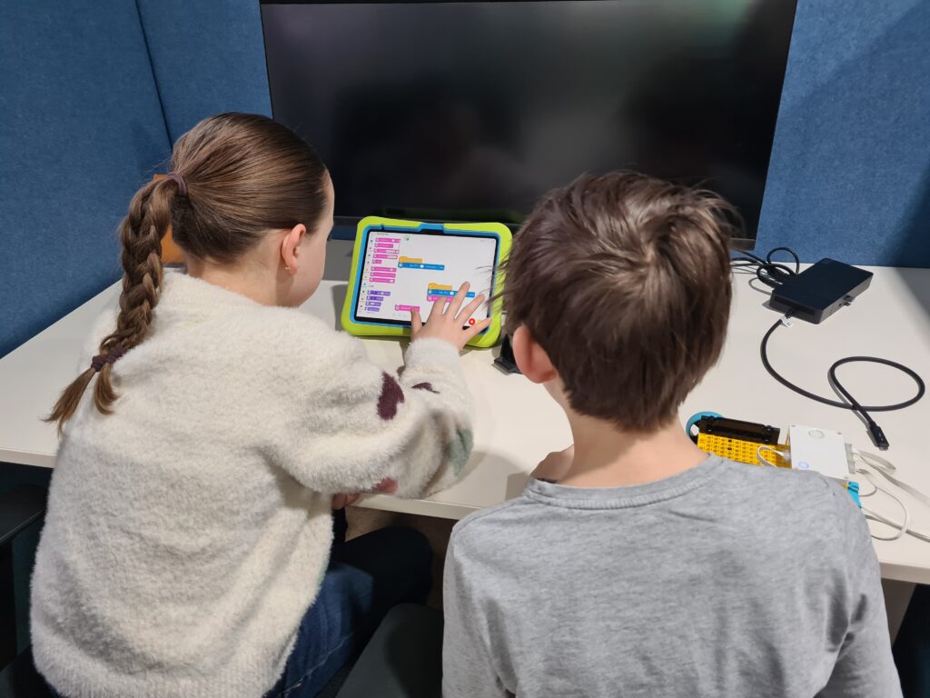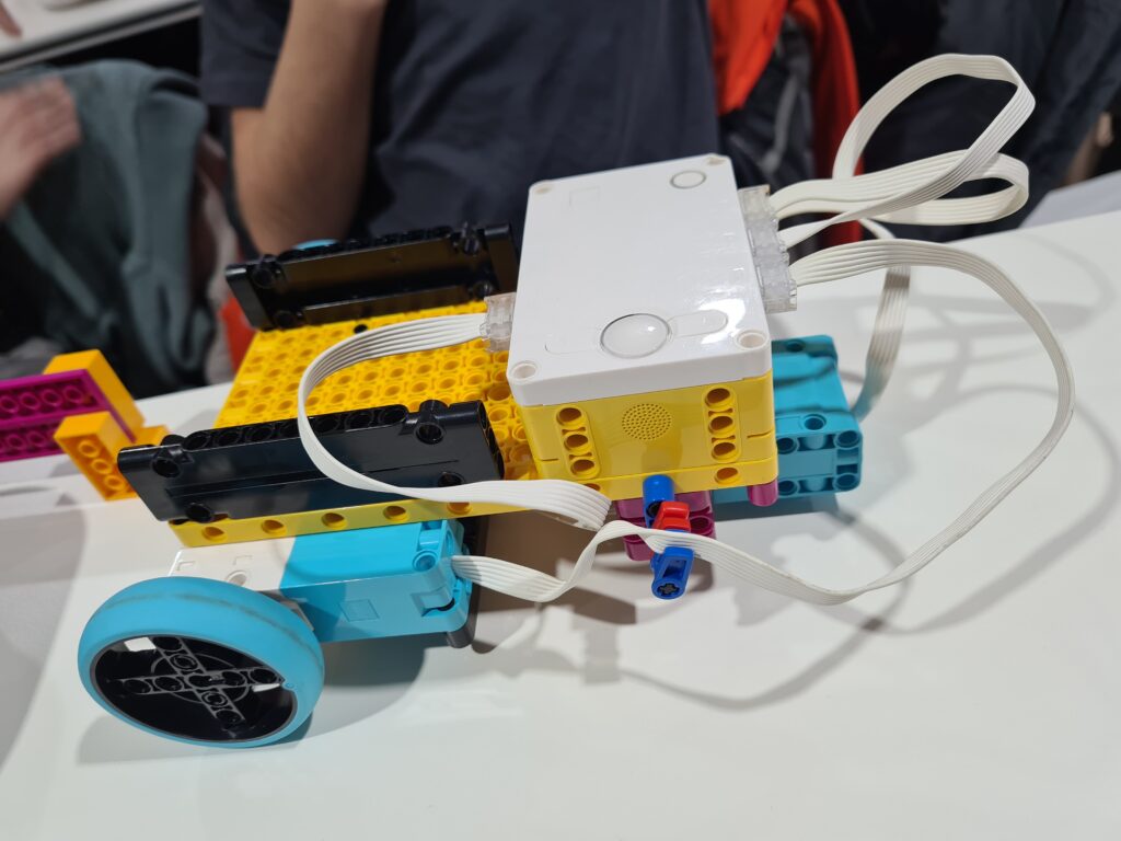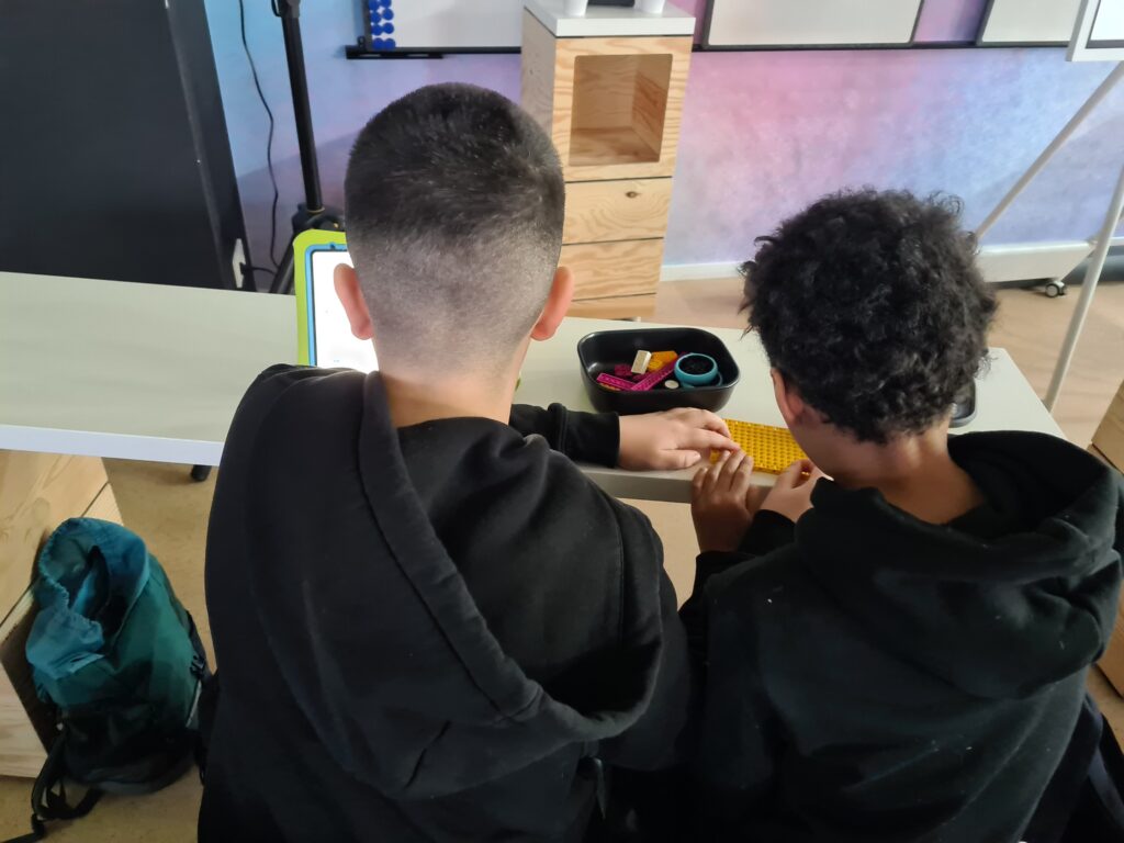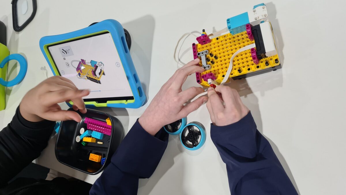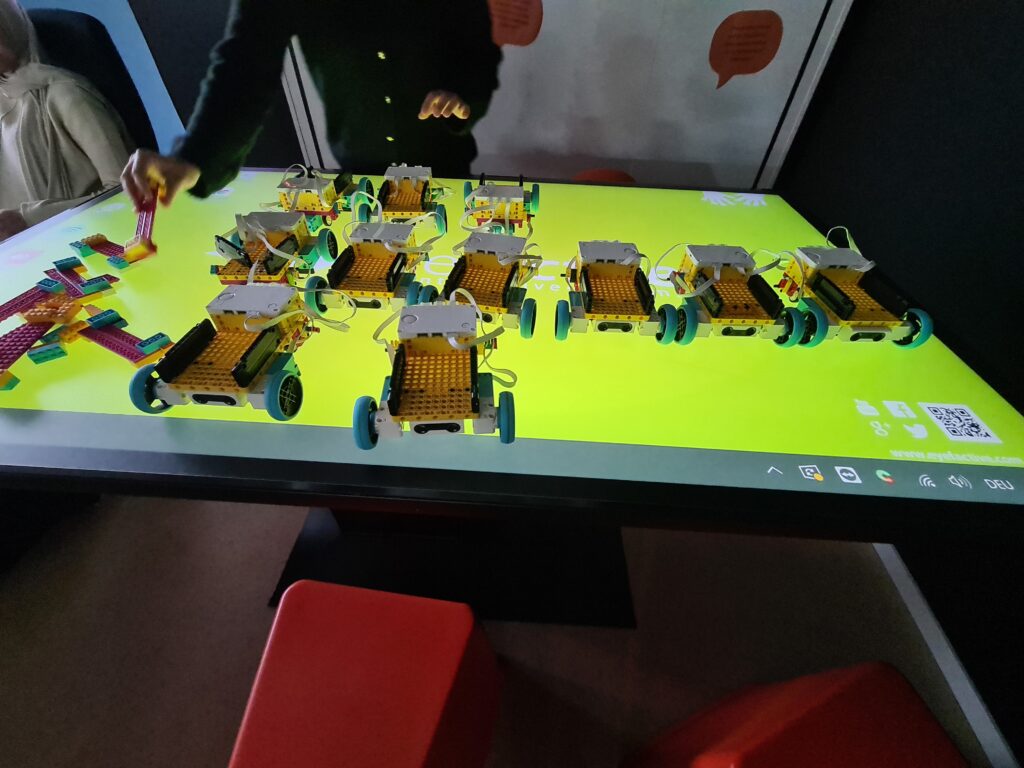 Schon die die erste Aufgabe klang nach einer Herausforderung: Aus vorgegebenen Teilen und einer digitalen Anleitung, die den Lernenden auf Tablets zur Verfügung gestellt wurde, sollte ein LEGO-Roboter in Form eines Lastwagens gebaut werden, inklusive Rädern und Sensoren. Anschließend sollten die Schülerinnen und Schüler mit Hilfe von „Scratch“, einer visuellen Programmiersprache, durch Code-Bausteine ihren Roboter jeweils in Partnerarbeit dazu bringen, vorgegebene Aufgaben zu erfüllen. Zusätzlich wurden die Schülerinnen und Schüler selbst kreativ, entwickelten beispielsweise Programmierungen, bei denen der Roboter immer dann, wenn er auf ein Hindernis trifft, dazu auffordert, durchgelassen zu werden.